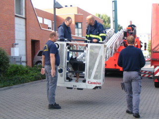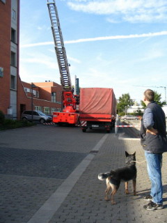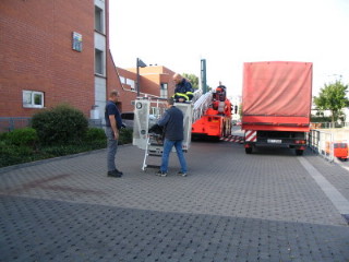 dran gewöhnen mit der großen Feuerwehr- Drehleiter