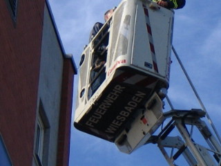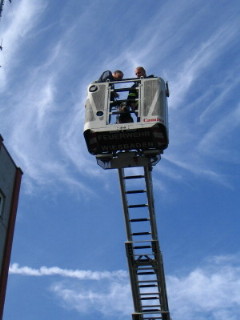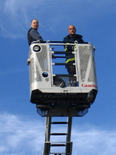 Drehleiterfahrt in luftige Höhen ist- und da hatte er wohl selbst