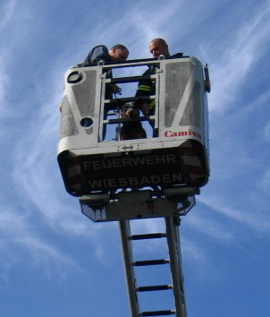 Übung auf der Feuerwehrdrehleiter