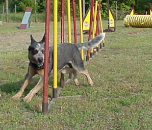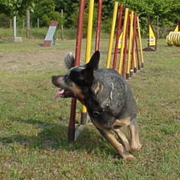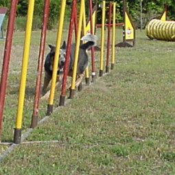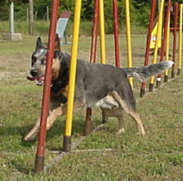 Slalom- laufen ist für einen Hund "Schwerstarbeit" !