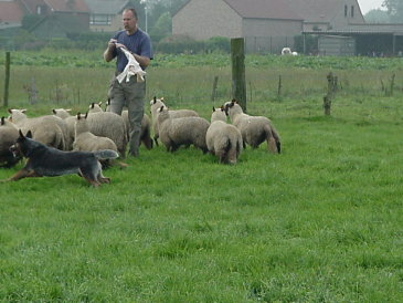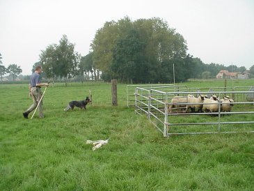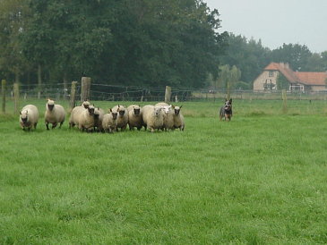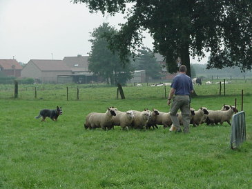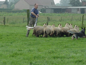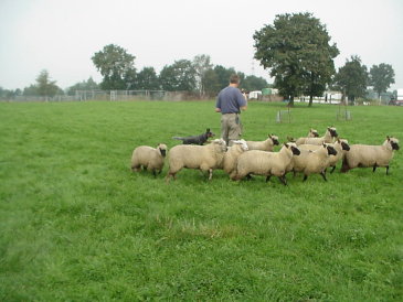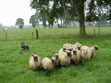die Schafe laufe, damit sie auch schön ruhig zusammen bleiben-