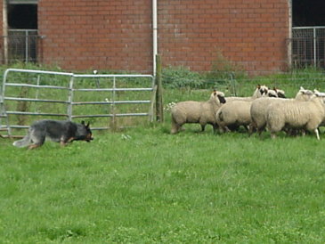 dem Uhrzeigersinn um die Schafe zu kreisen.